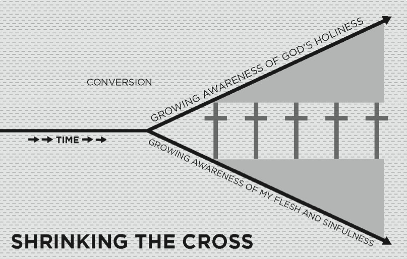 “As these two lines diverge, the cross becomes larger in our experience, producing a deeper love for Jesus and a fuller understanding of his goodness. At least that’s the ideal. But, in reality, because of indwelling sin, we are prone to forget the gospel—to drift away from it like a boat loosed from its moorings. That’s why the Bible urges us not to be “moved [away] from the hope held out in the gospel” (Col. 1:23) and to “let the word of Christ dwell in [us] richly” (Col. 3:16). When we are not anchored in the truth of the gospel, our love for Jesus and our experience of his goodness become very small. We end up “shrinking the cross” by either pretending or performing.
